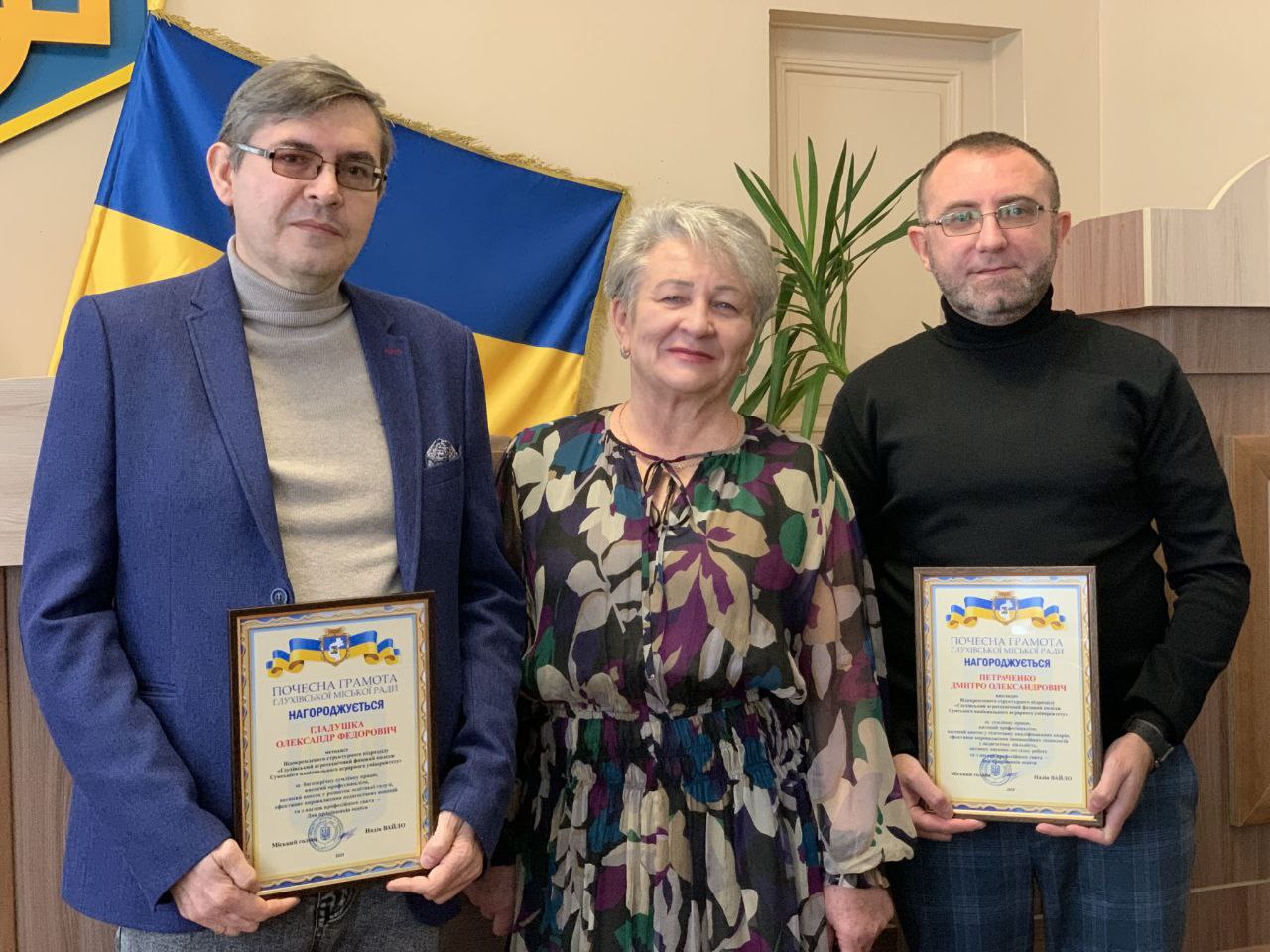 Грамоти Глухівської міської ради отримали методист Олександр Гладушка та викладач спецдисциплін Дмитро Петраченко.