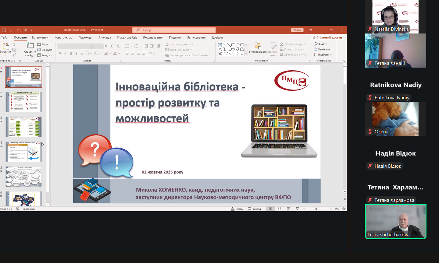 Онлайн-захід організував Науково-методичний центр вищої та фахової передвищої освіти для підвищення кваліфікації та обізнаності фахівців бібліотечної справи щодо сучасних підходів до роботи з молоддю.