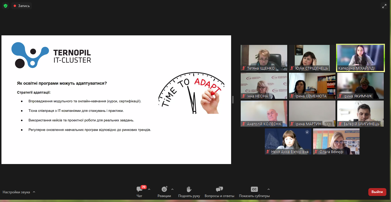 Викладачі ГАФК СНАУ долучилися до онлайн-круглого столу «Підготовка фахівців для галузі “Інформаційні технології”: гармонізація ринку праці та ринку освітянських послуг”, організованого Науково-методичним центром ВФПО.
