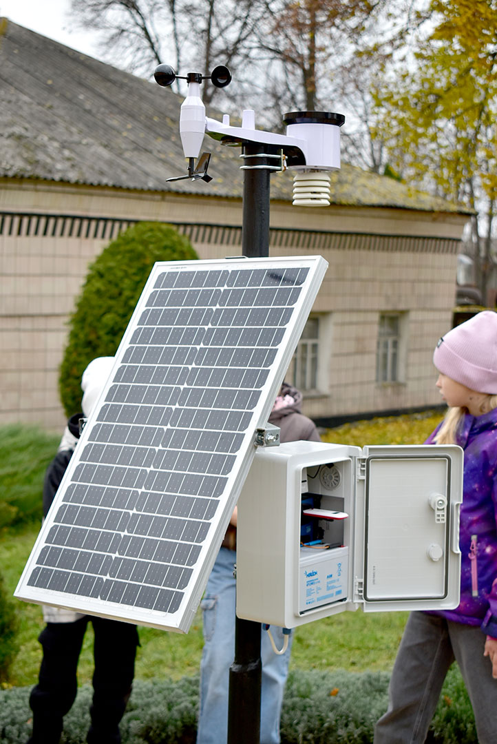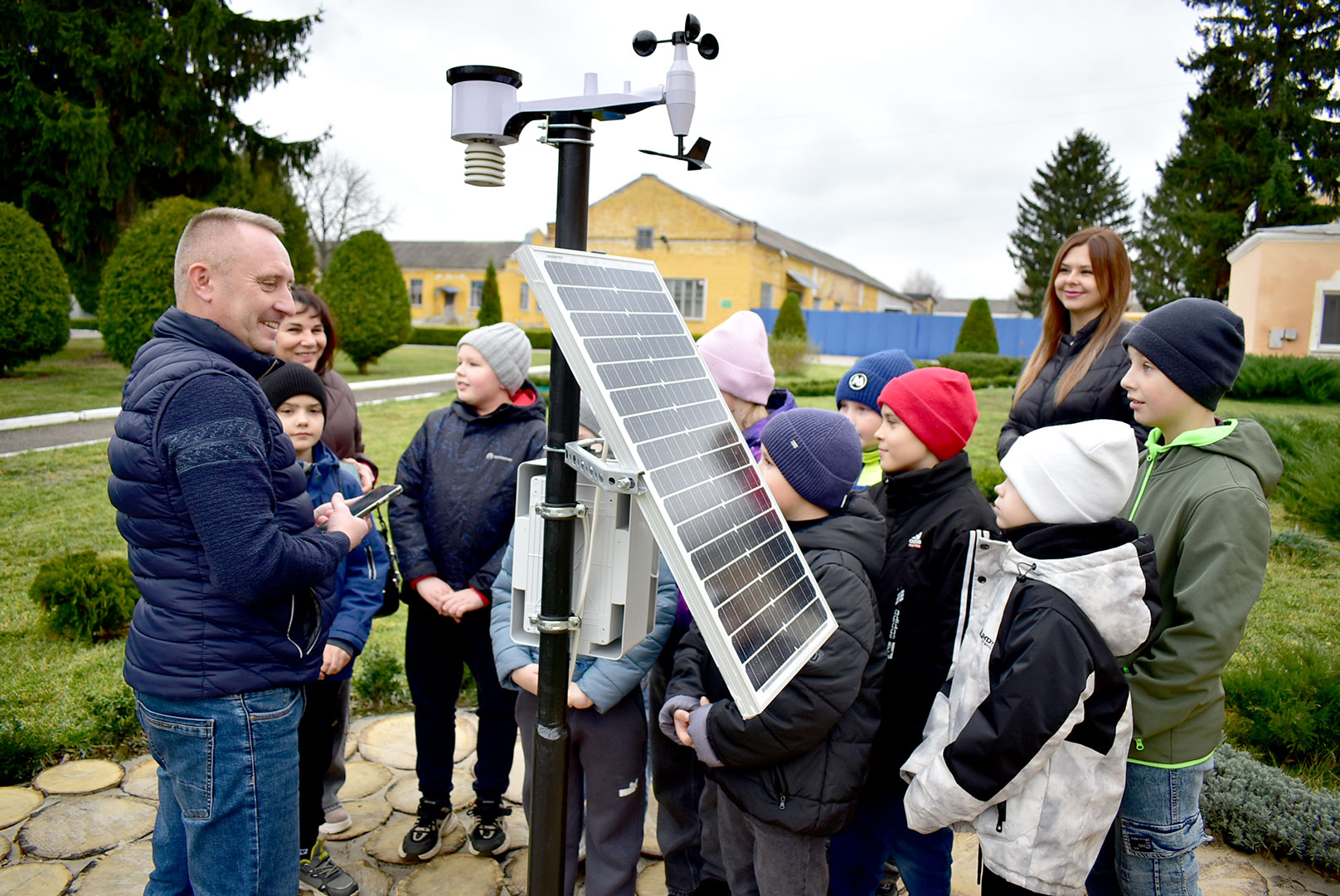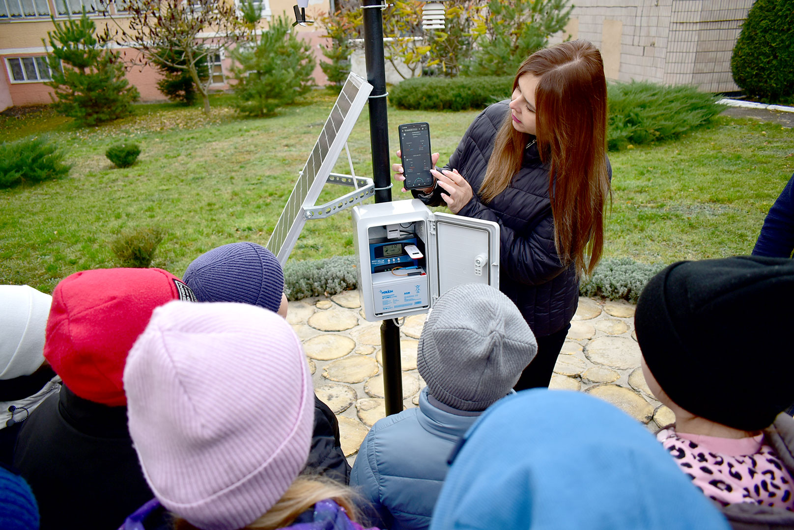 Зустріч пройшла у рамках уроку “Я досліджую світ”, під час якого школярі вивчали енергоощадні технології, саме тому й завітали до коледжу, щоб побачити нещодавно встановлену метеорологічну станцію AW009, яка працює від сонячних батарей.