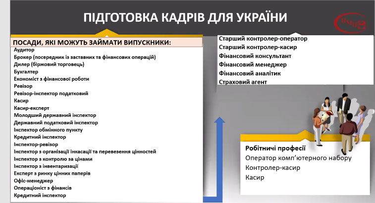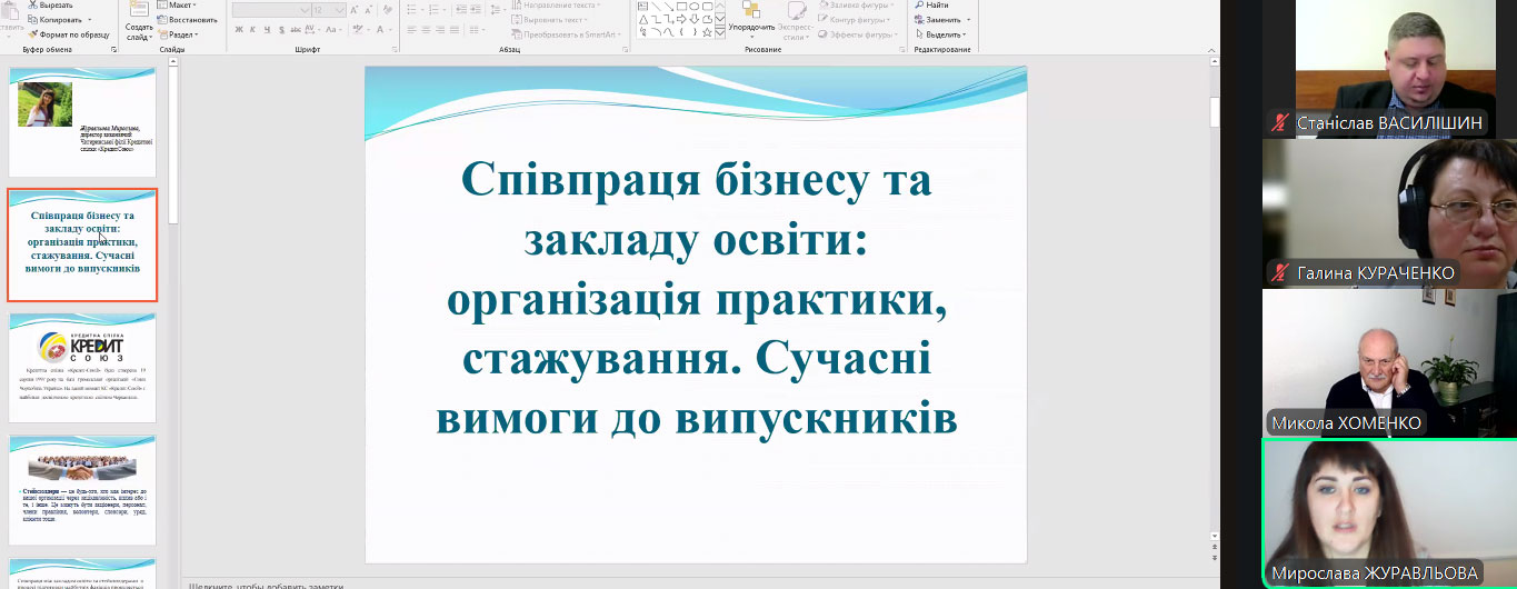 Завідувачка відділення економіки та інформаційних технологій Віта Суглобова та голова циклової комісії викладачів економіки, менеджменту та інформаційних технологій Людмила Коренівська долучилися до зустрічі, темою якої стала «Підготовка фахівців для банківської сфери та бізнесу: гармонізація ринку праці та ринку освітянських послуг за спеціальністю 072 «Фінанси, банківська справа, страхування та фондовий ринок».