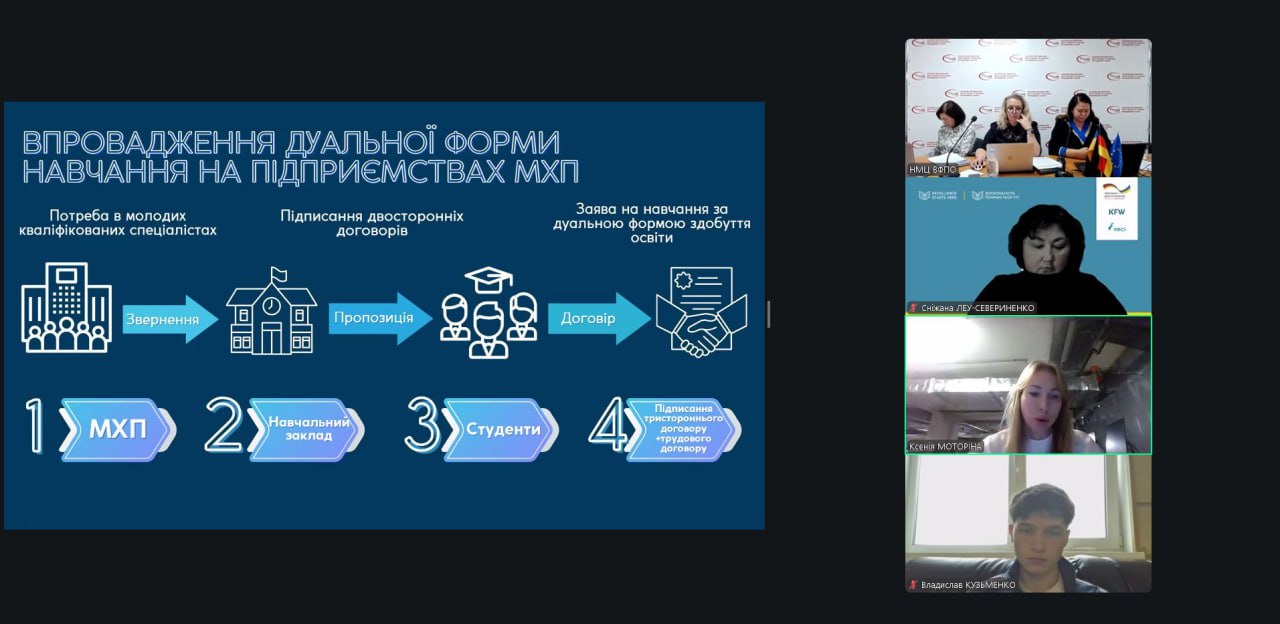 Завершальним етапом стала відкрита дискусія, під час якої учасники мали змогу поділитися власними напрацюваннями, висловити бачення щодо подальшого розвитку дуальної освіти та визначити напрями її вдосконалення відповідно до європейських стандартів якості.