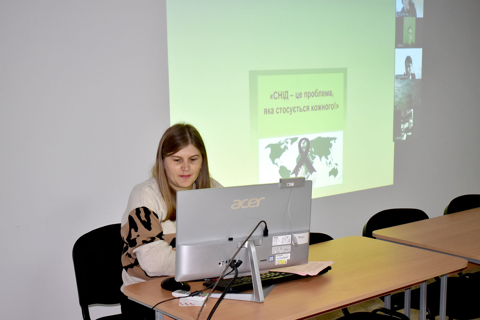 Під час другої частини зустрічі психолог коледжу Ірина Марченко повідомила студентам, що 1 грудня відзначають День боротьби зі СНІДом, тож доцільно освіжити в пам’яті знання щодо хвороби, яка вважається світовою пандемією. Присутні ознайомилися зі статистичними даними; дізналися про середню тривалість життя інфікованої людини; пригадали шляхи передачі хвороби. Також виконали кілька вправ, визначаючи міфи та факти щодо СНІДу й озвучуючи власні дії в ситуаціях з інфікованими людьми. Під час спілкування прийшли до висновку, що треба докладати максимум зусиль, щоб не увійти в сумну статистику, а до хворих на СНІД виявляти емпатію та толерантність, бо вони й так несуть важкий тягар.