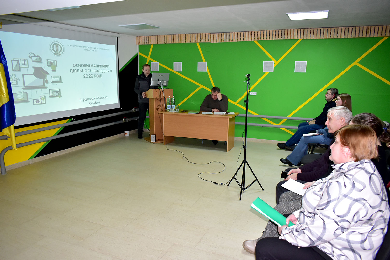 В обговоренні цього питання взяли участь заступники директора: з навчальної роботи – Михайло Кліндух, навчально-виробничої роботи – Олександр Дещенко, виховної роботи – Ірина Хлонь та адміністративно-господарської роботи – Наталія Чорнобай. Вони розповіли про основні напрямки діяльності коледжу в 2026 році.