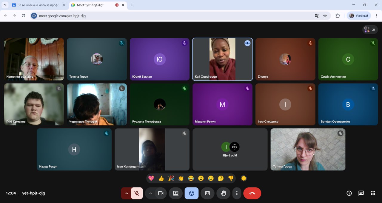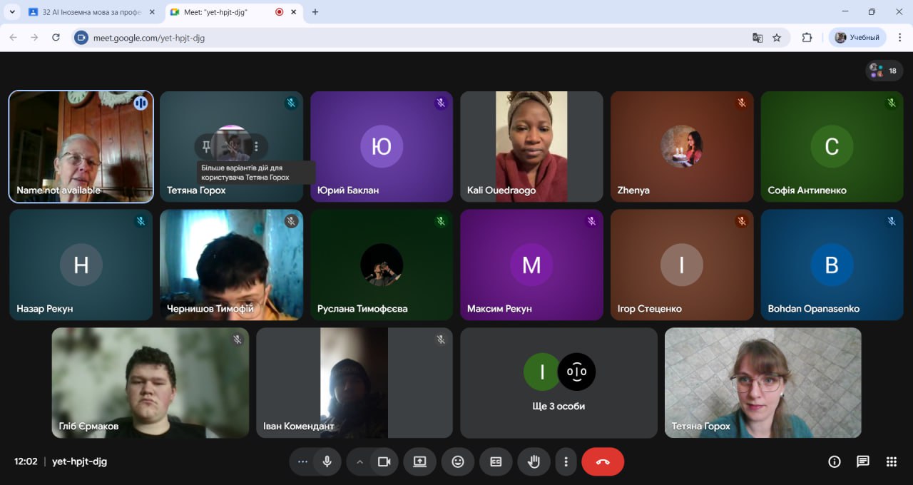 Студенти Глухівського агротехнічного фахового коледжу СНАУ разом із педагогом Тетяною Горох взяли участь в онлайн-зустрічі за участі викладача англійської мови з приватної школи у Швейцарії Джилі Шіблер та англомовної колеги з Буркіна-Фасо міс Калі.