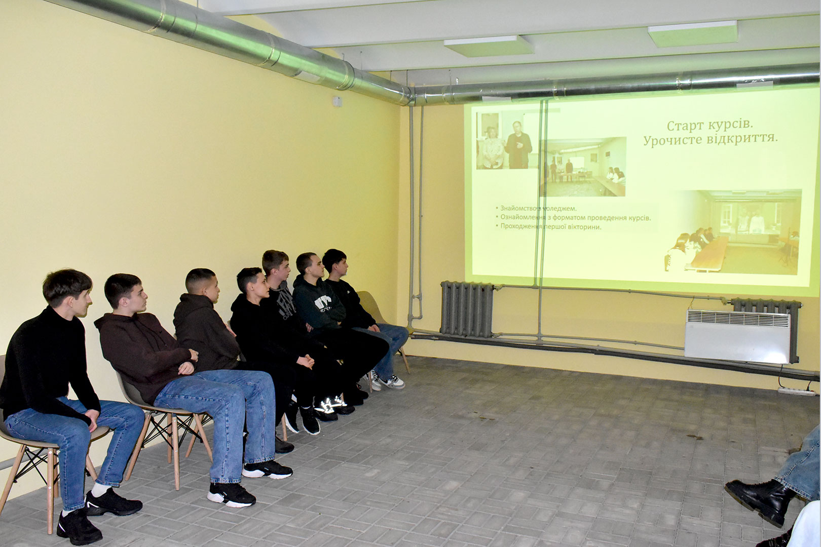 Далі юнаки та дівчата за допомогою презентації пригадали свій шлях, який проходили протягом курсів, а це не лише навчання, а й знайомство з коледжем, викладачами, відділеннями та спеціальностями, за якими ведеться підготовка в навчальному закладі. Крім цього, молоді люди відповідали на запитання вікторини. Зокрема називали повне найменування коледжу та студентського самоврядування, ім’я директора, кількість відділень і спеціальностей, кольори логотипу тощо.