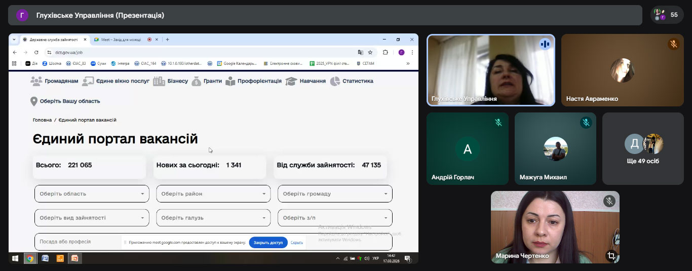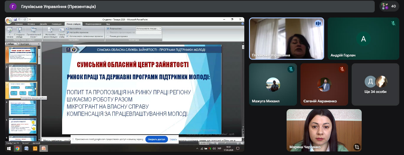 У рамках співпраці між коледжем і Глухівським управлінням Шосткинської філії Сумського обласного центру зайнятості відбулася інформаційно-консультаційна лекція на тему «Державна служба зайнятості: дайджест можливостей для молоді».