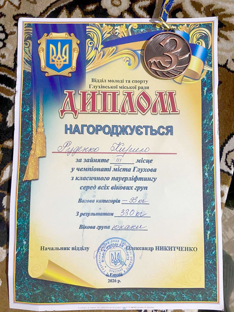 Студент 21АІ групи Кирил Руденко виборов третє місце в чемпіонаті Глухова з класичного пауерліфтингу.