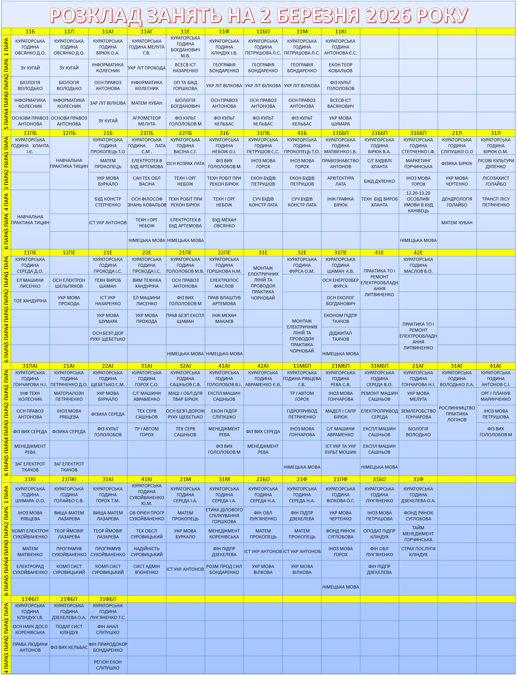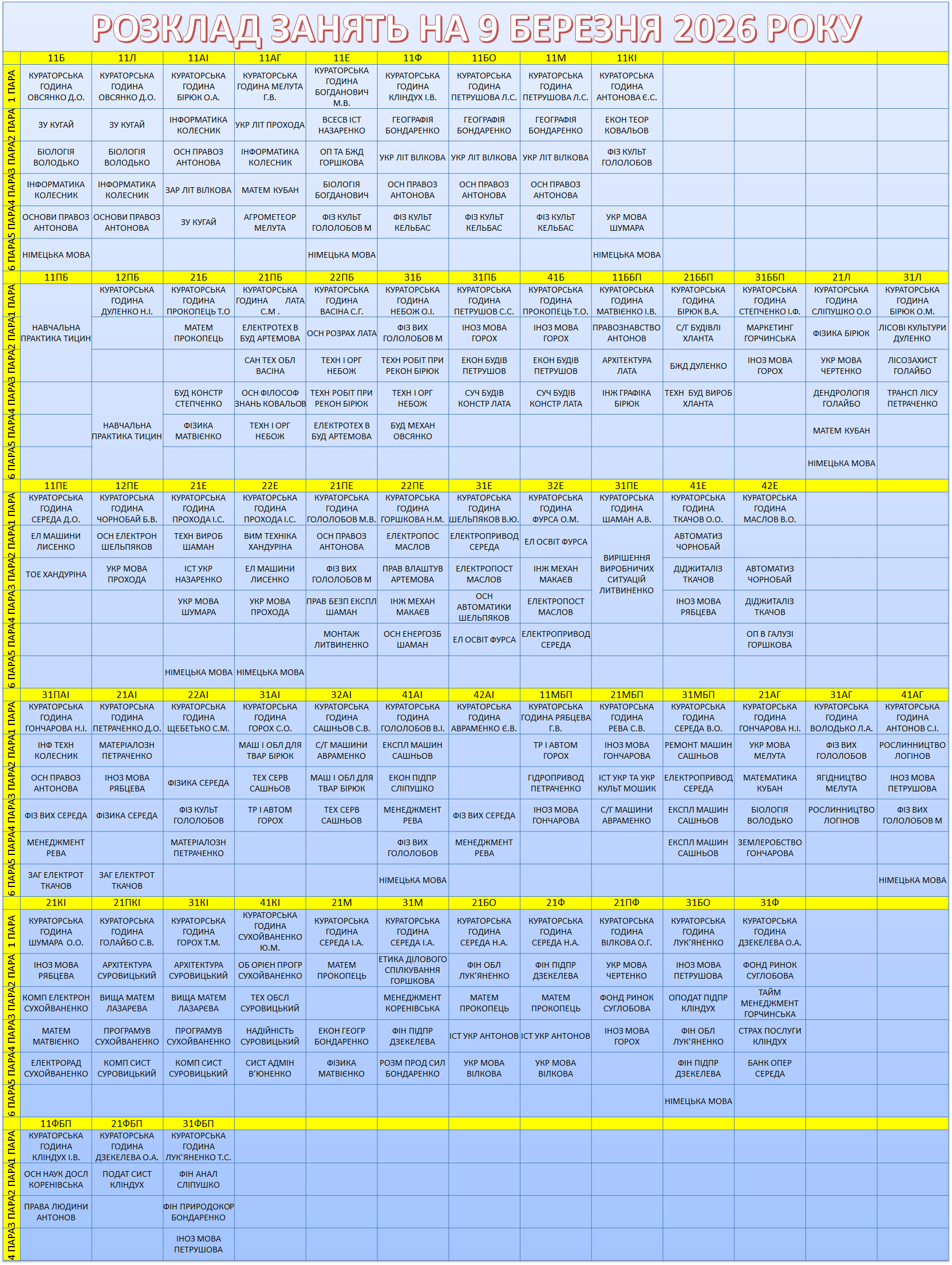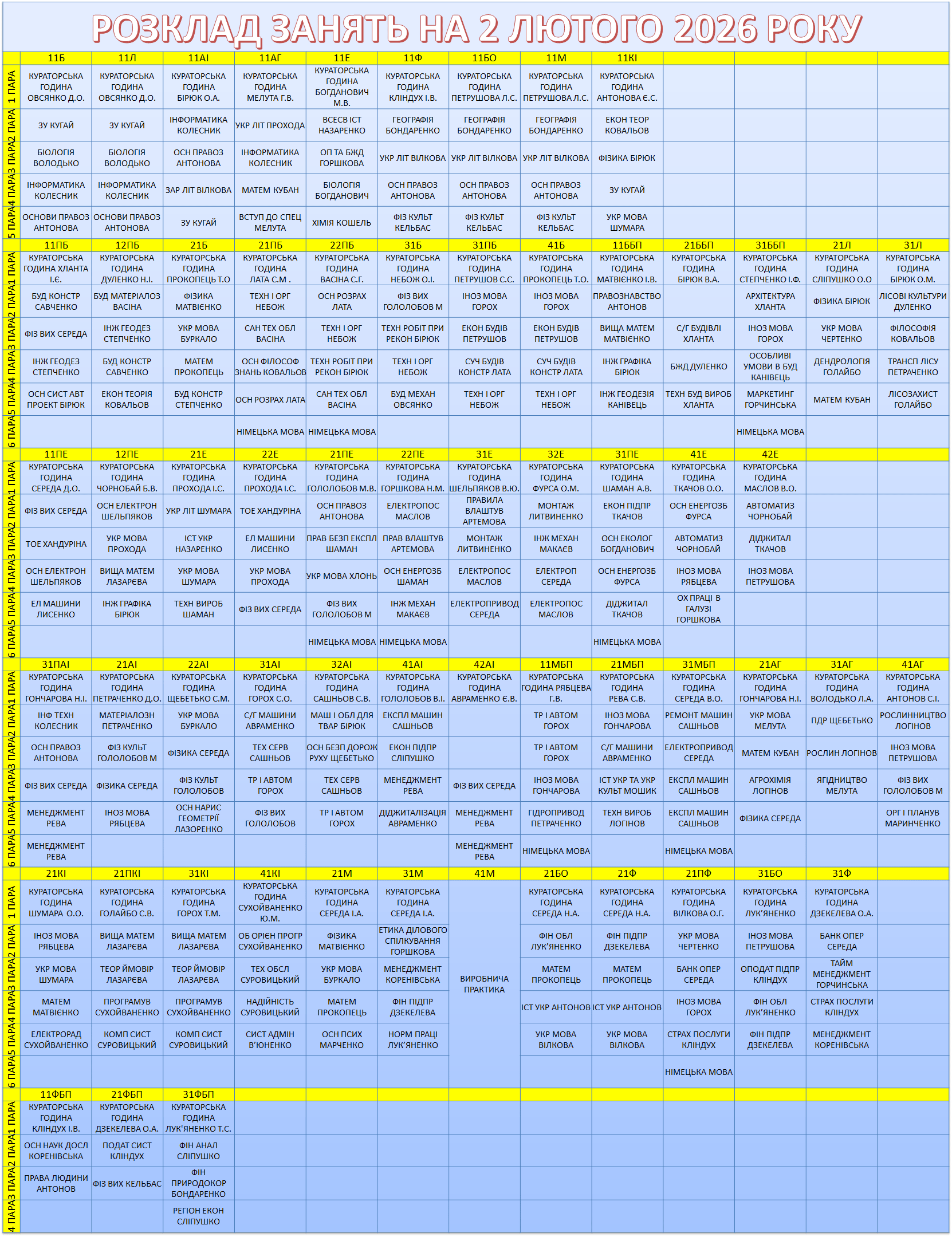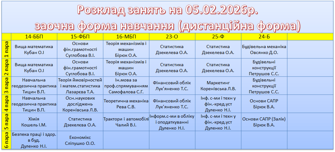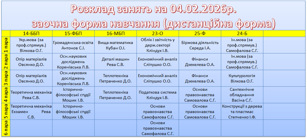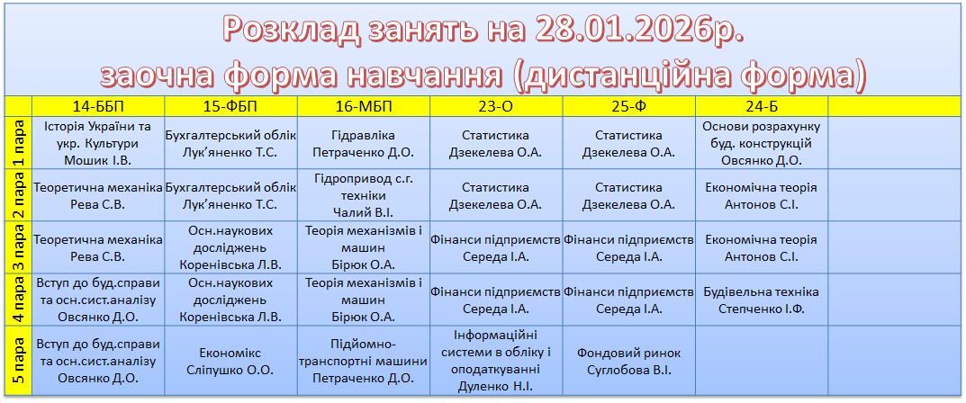 УВАГА! Перевіряйте, будь ласка, розклад, бо можуть бути зміни.