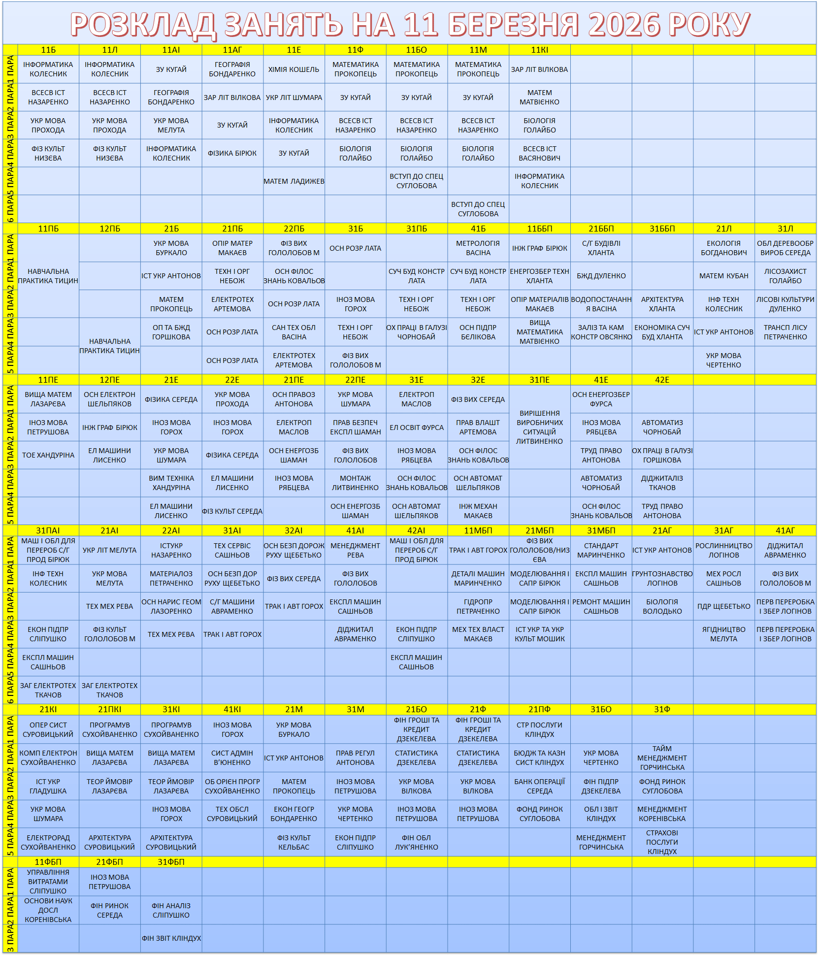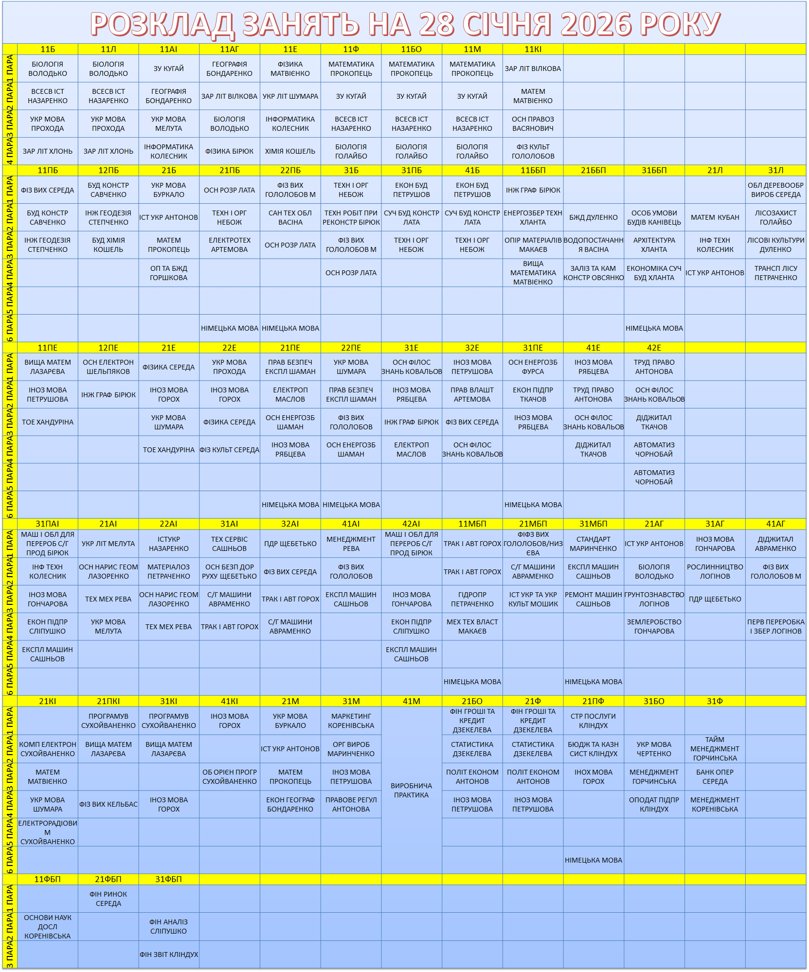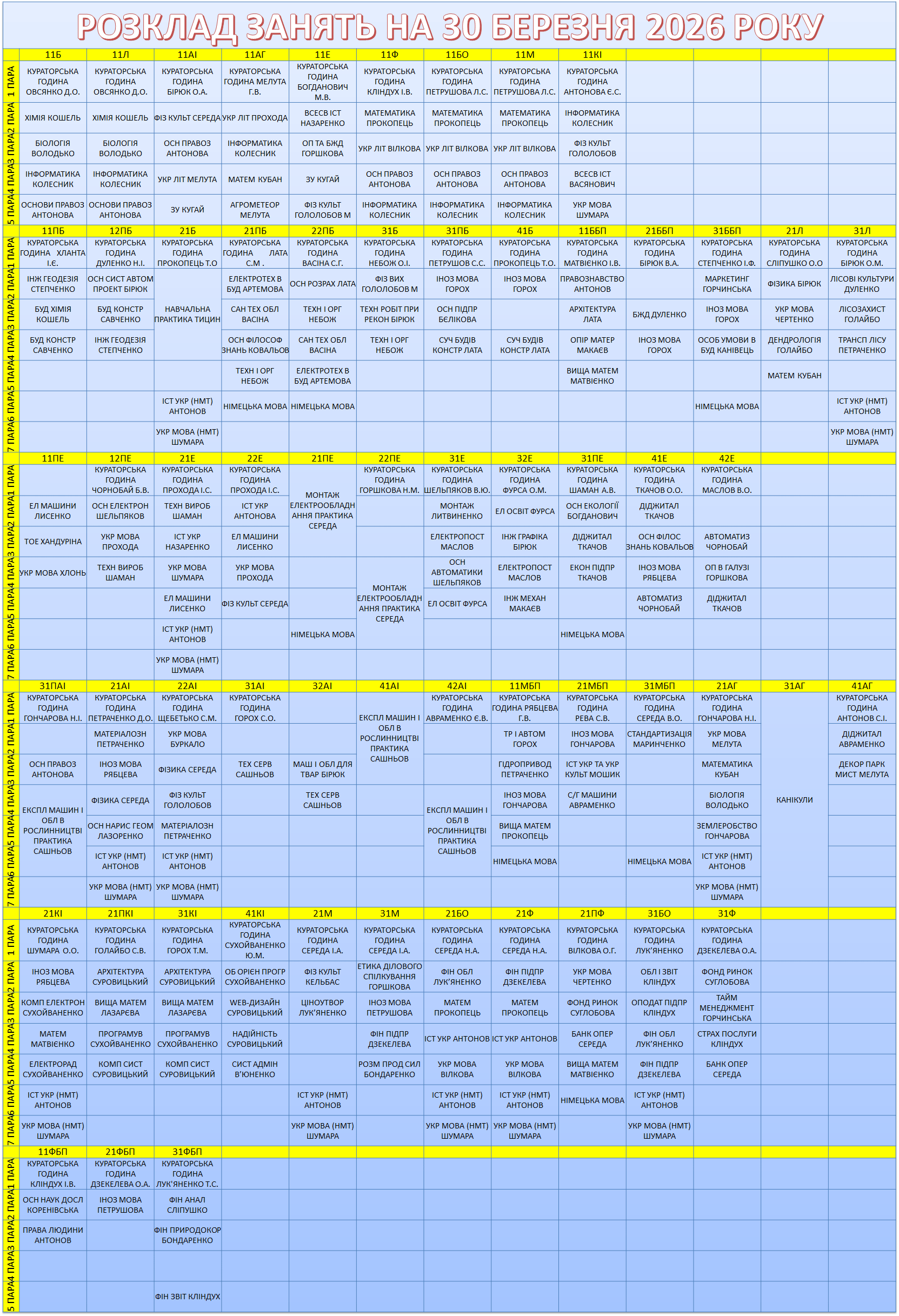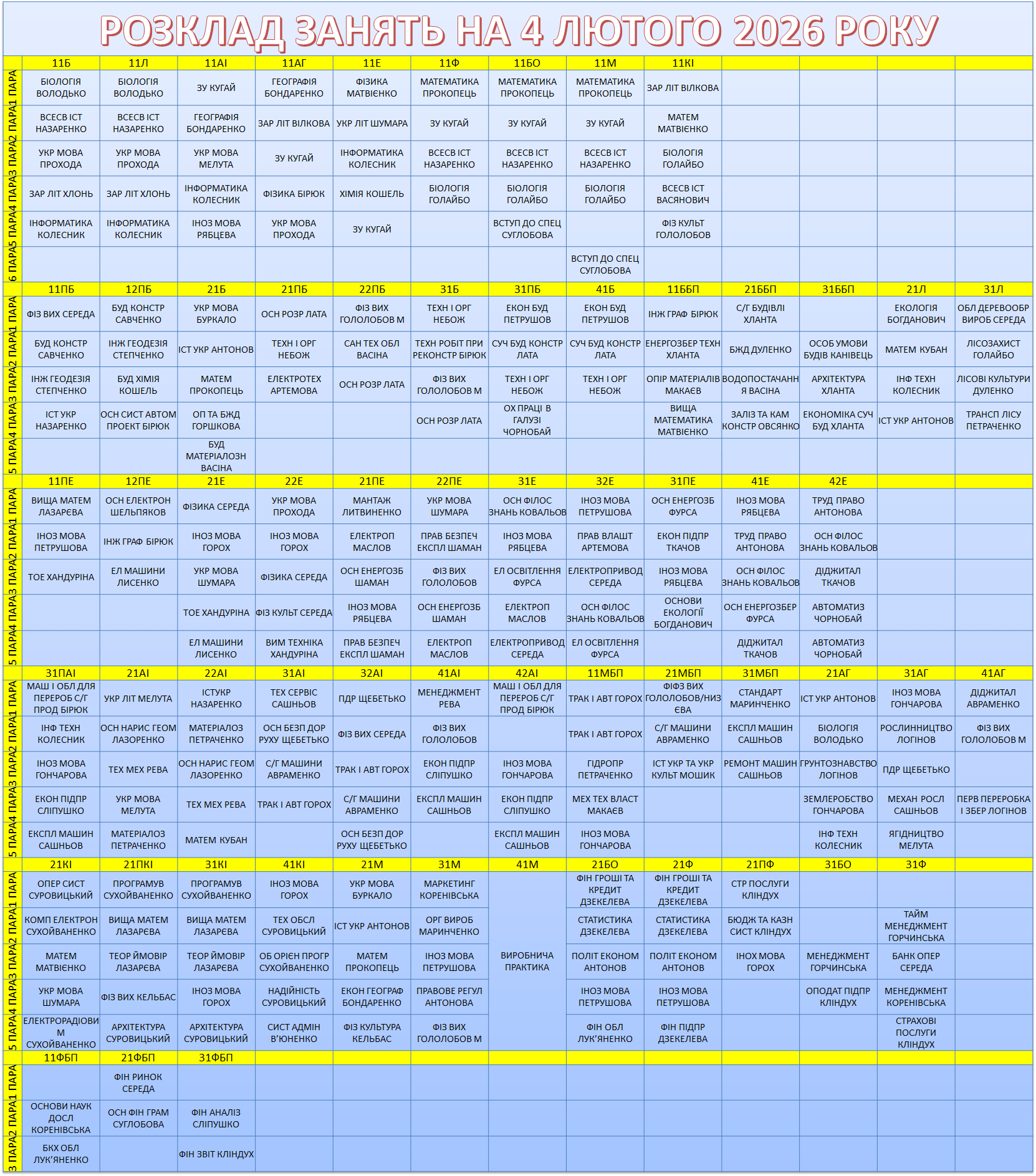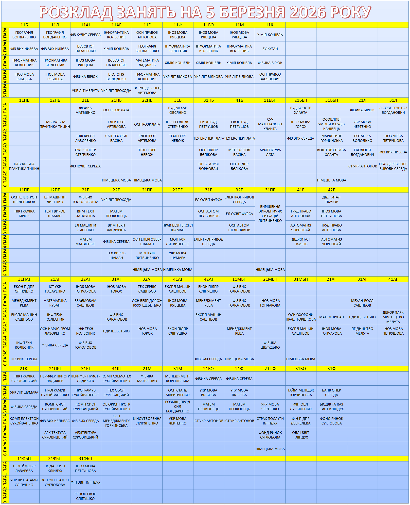УВАГА! Перевіряйте, будь ласка, розклад, бо можуть бути зміни.