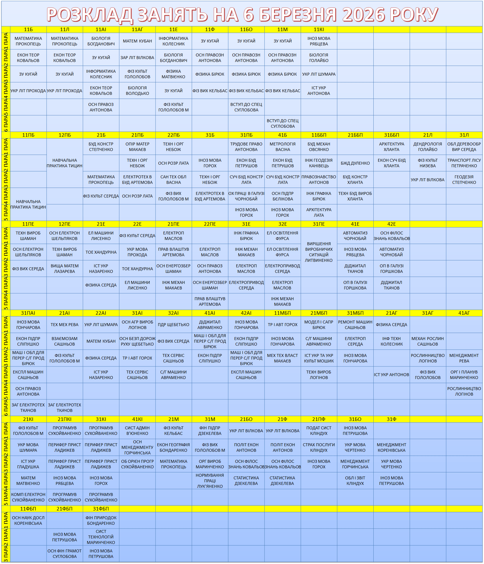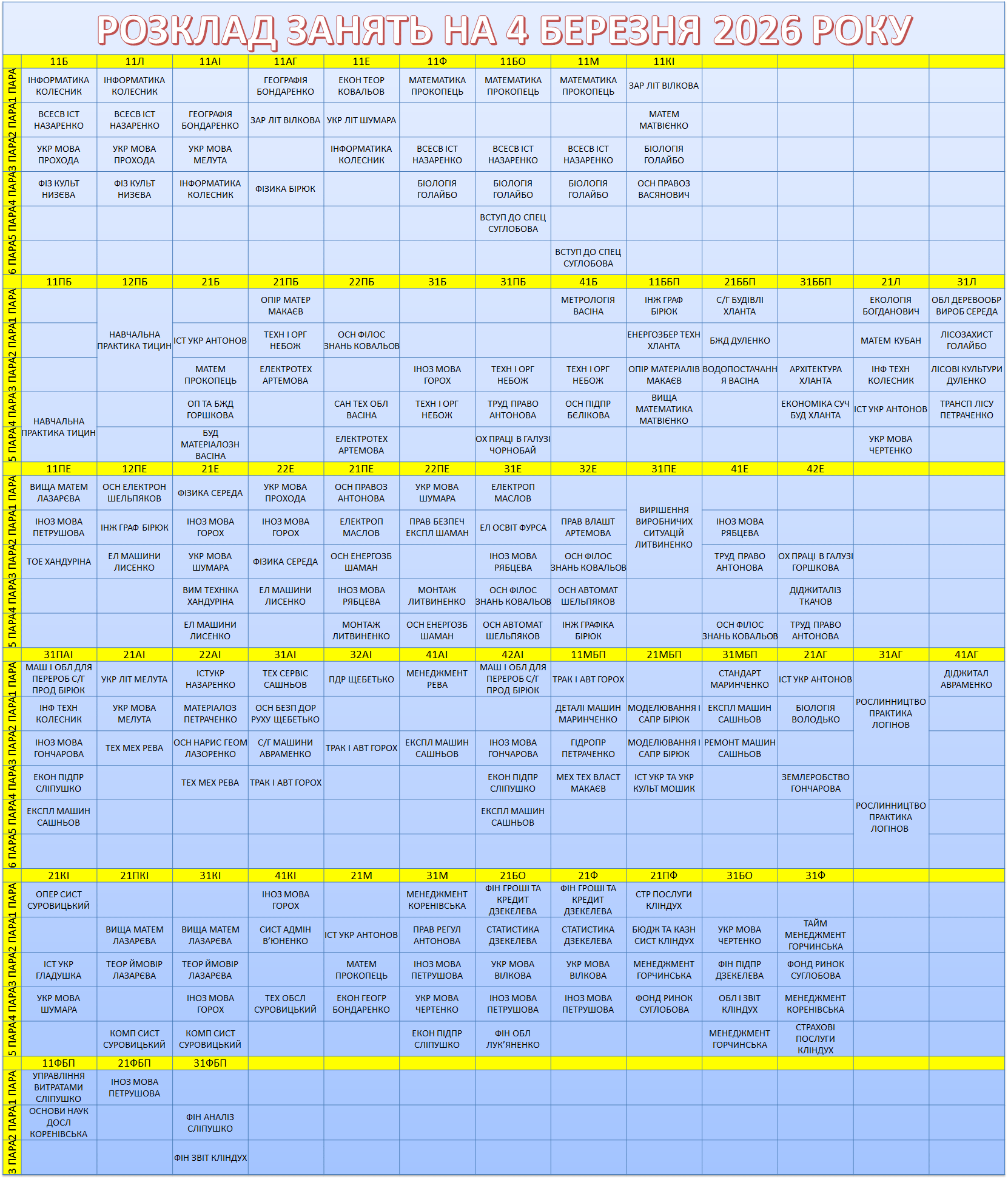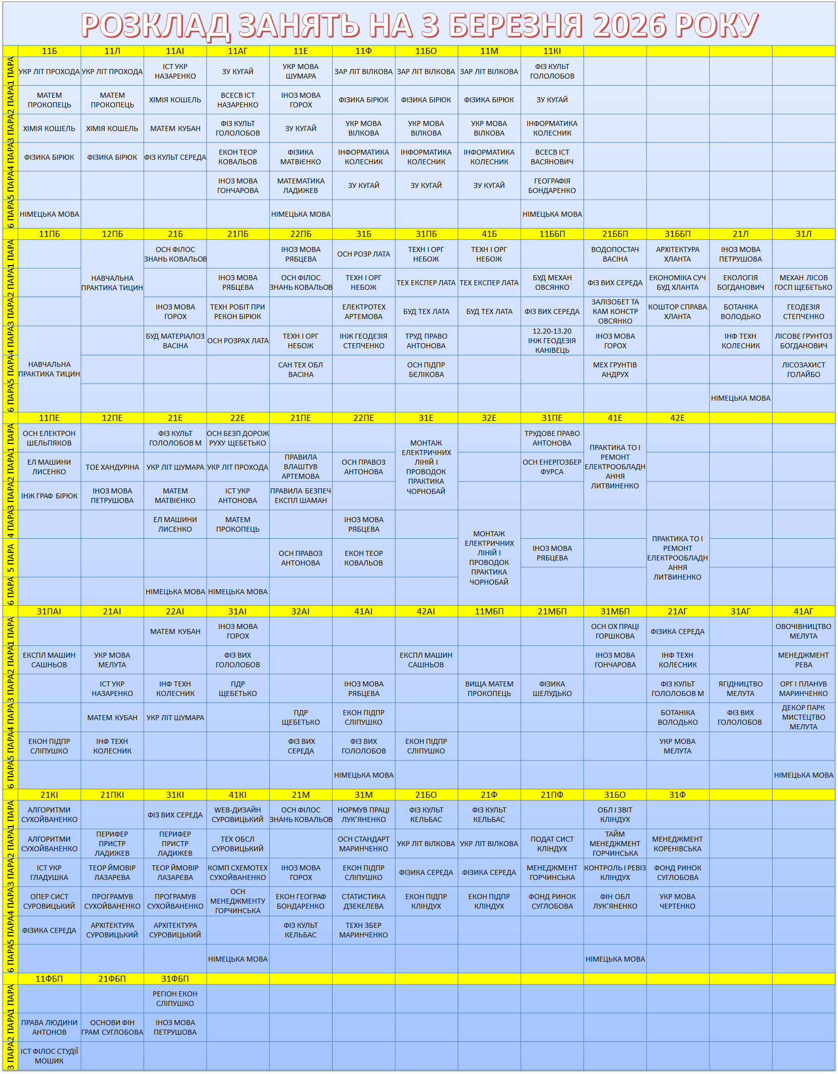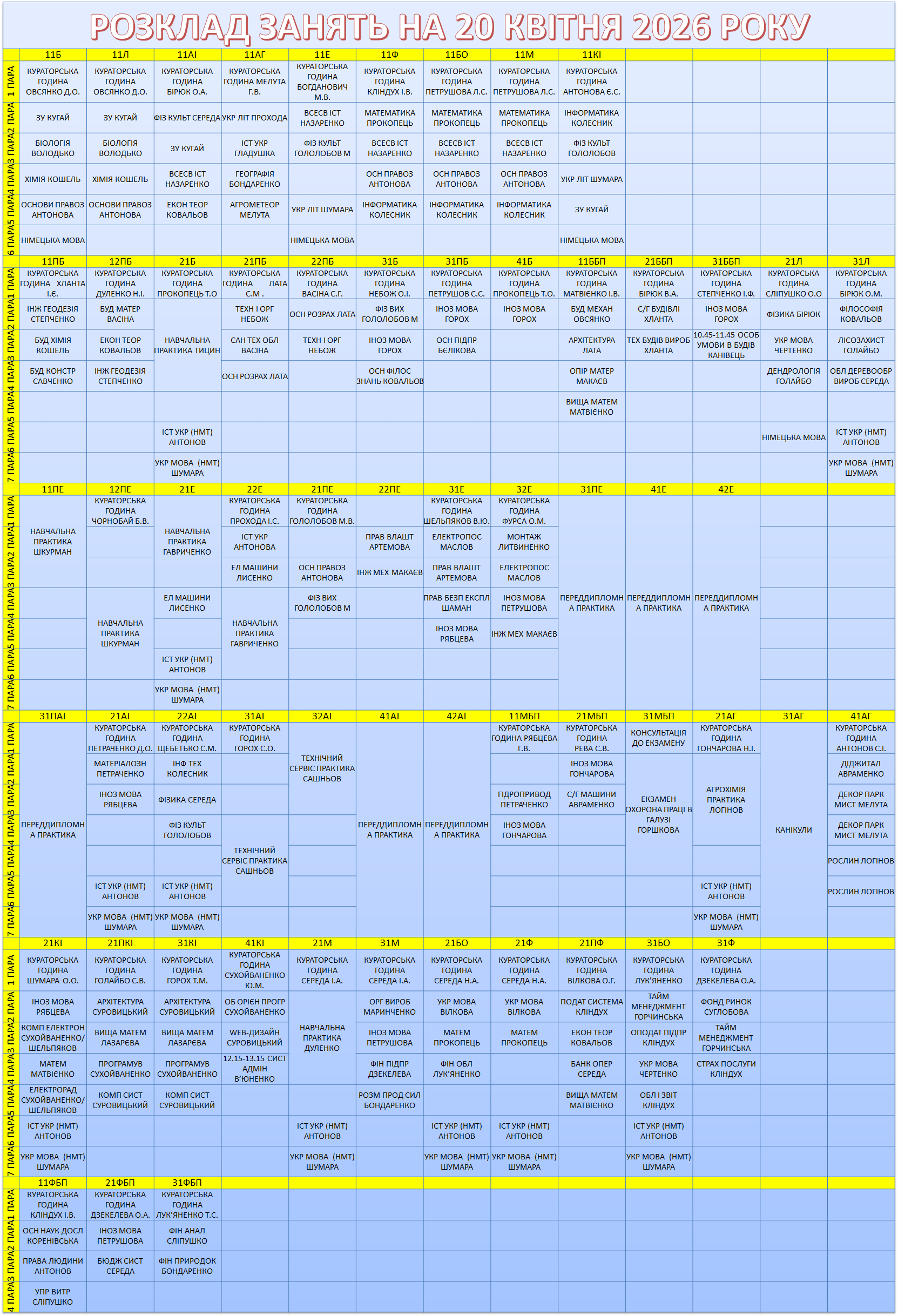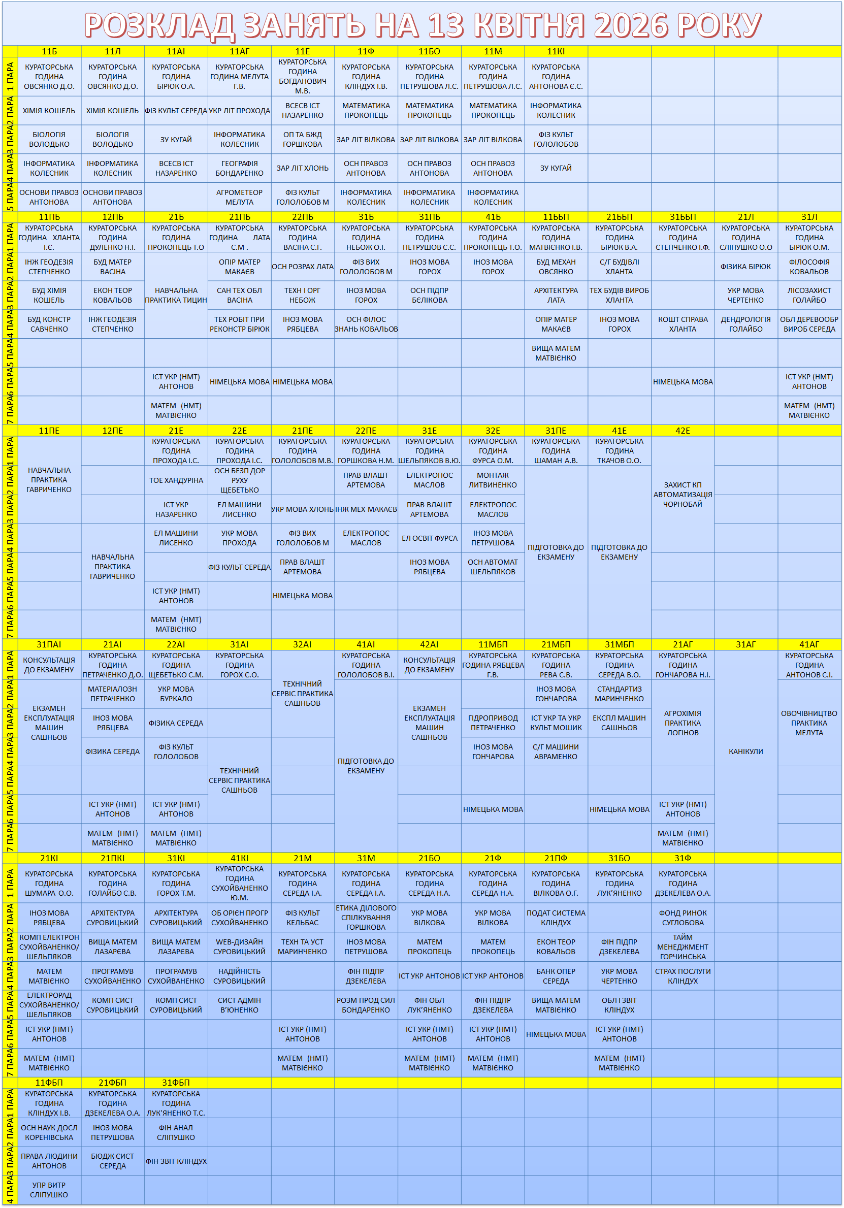 УВАГА! Перевіряйте, будь ласка, розклад, бо можуть бути зміни.