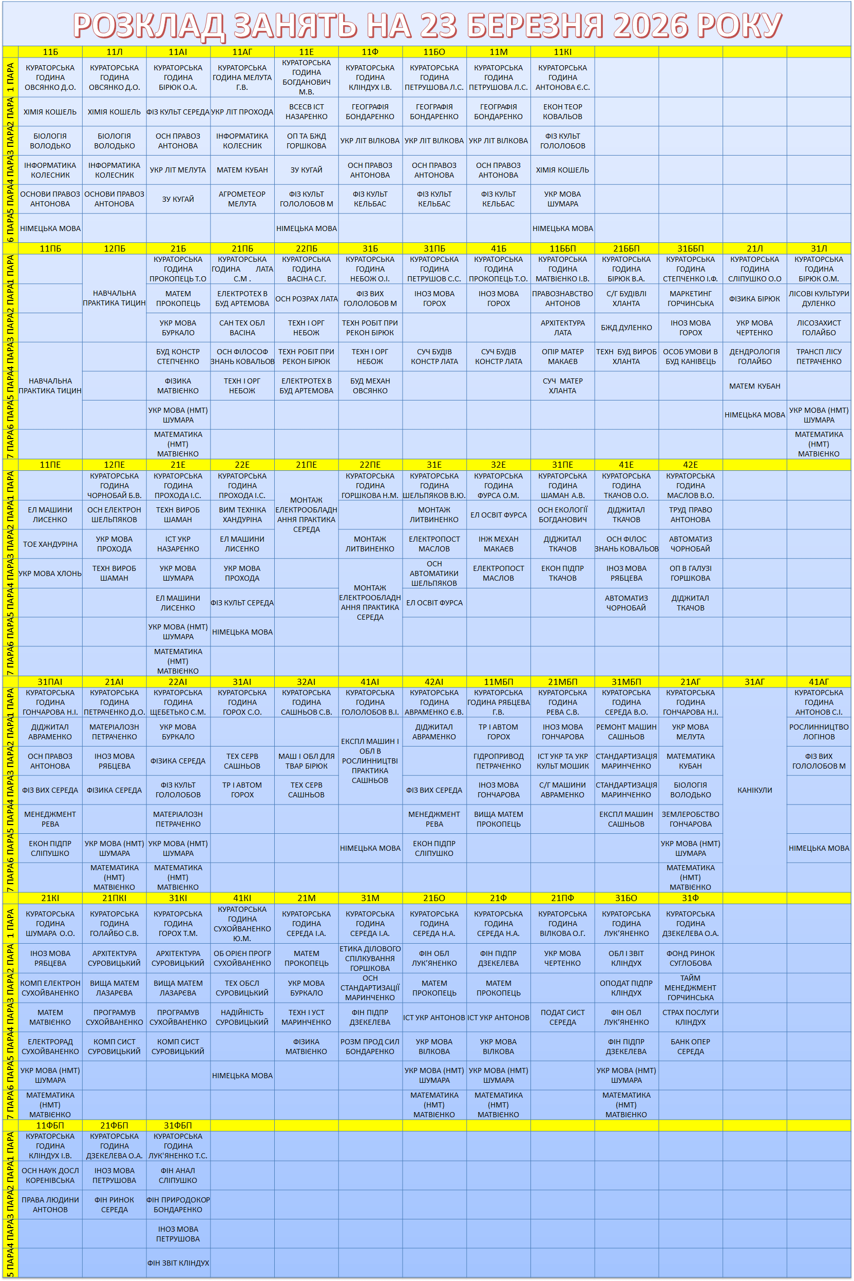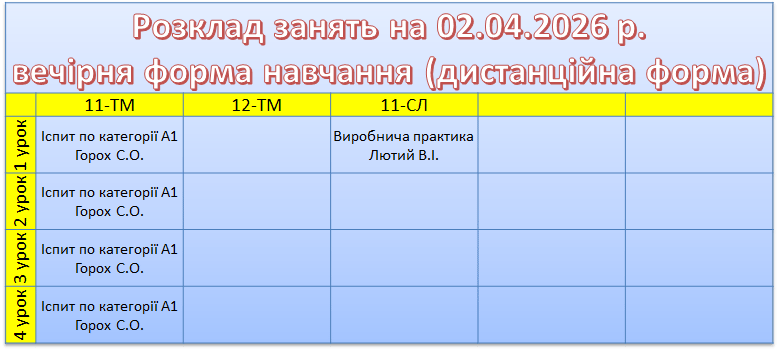 УВАГА! Перевіряйте, будь ласка, розклад, бо можуть бути зміни.