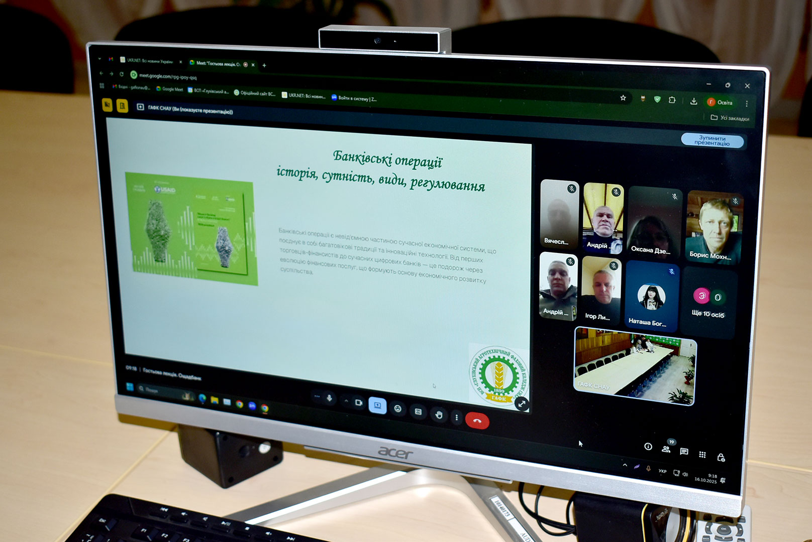 Під час виступу пані Ніна розповіла про розвиток банківської справи від середньовіччя до сьогодення, окреслила основні функції банків як фінансових посередників, розкрила класифікацію активних, пасивних і комісійних операцій, їх сутність та основну мету. Особливу увагу Ніна Миколаївна приділила ролі банків у сучасній економіці, регуляторним стандартам, а також цифровим інноваціям у банківській сфері.