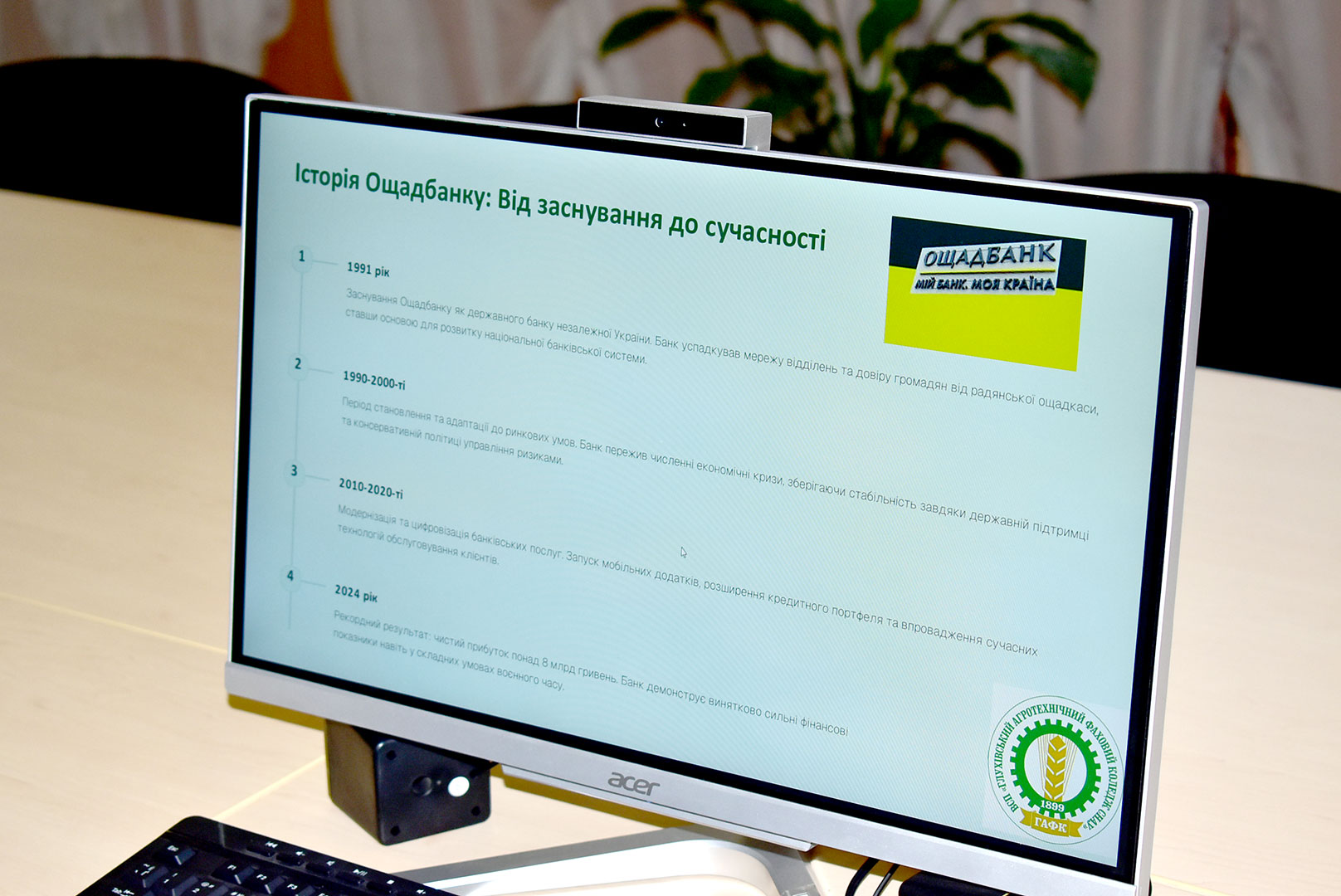 Окремий блок презентації стосувався діяльності Ощадбанку як найбільшого державного банку України: його історії, ключових фінансових показників, сучасних послуг і соціальних програм підтримки економіки та населення.