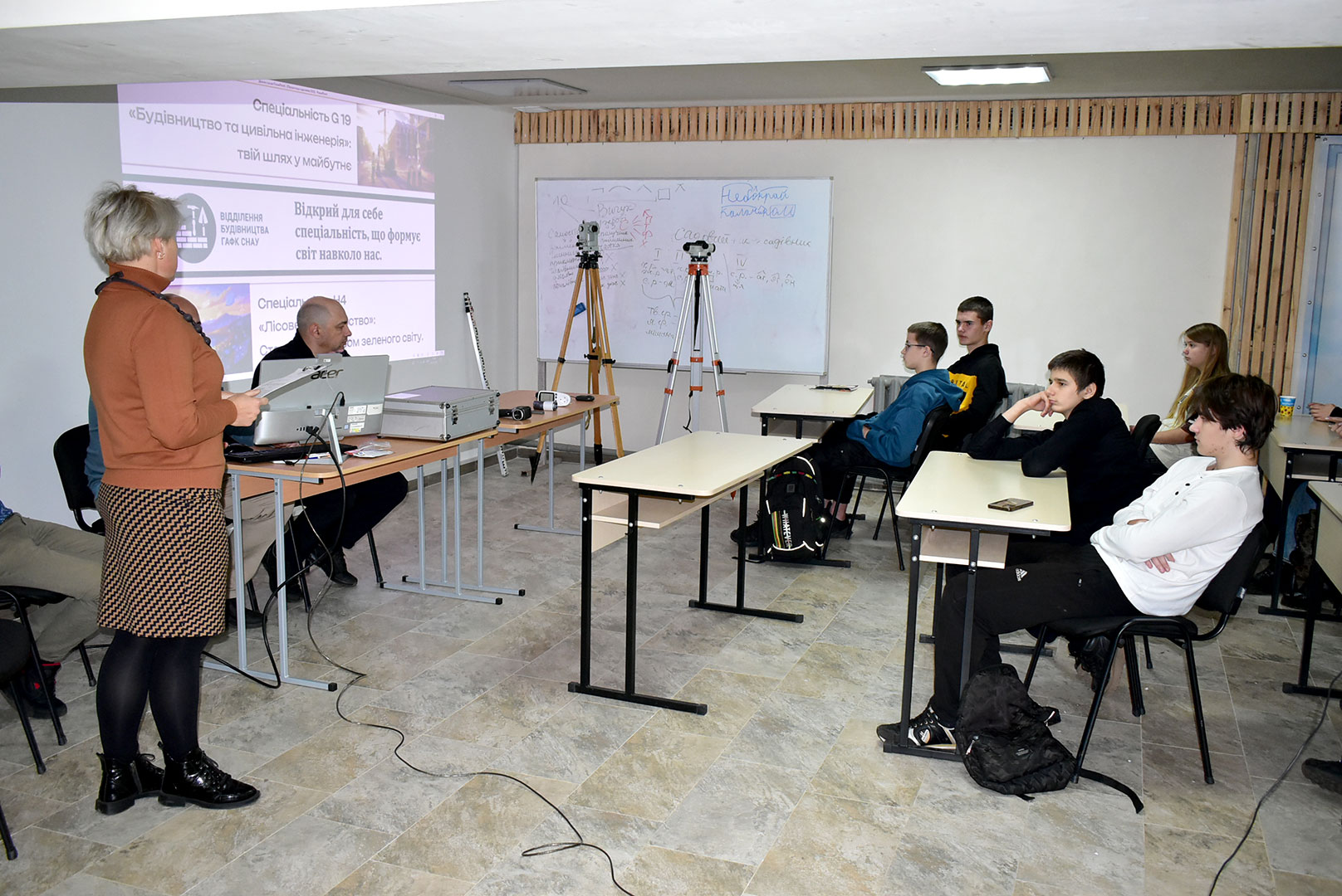 Серед іншого присутні дізналися, що будівництво є складним процесом, в який залучені геологія, геодезія та топографія, архітектура. Викладачі цих дисциплін Сергій Петрушов, Іван Степченко й Денис Овсянко ознайомили присутніх із головним обладнанням, що використовується в галузях (далекоміром, тепловізором, люксометром, термогігрометром, нівеліром, теодолітом), а також візуалізували 3-D моделювання на прикладі коледжу.