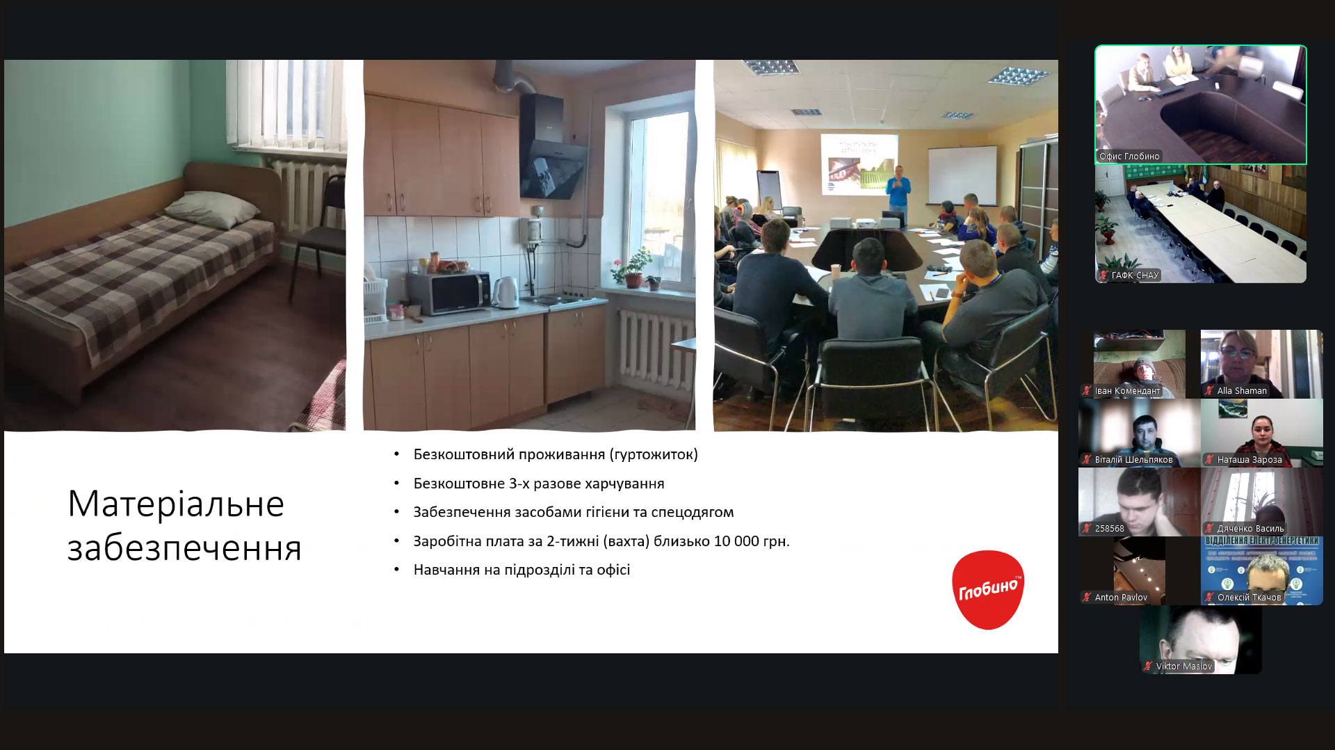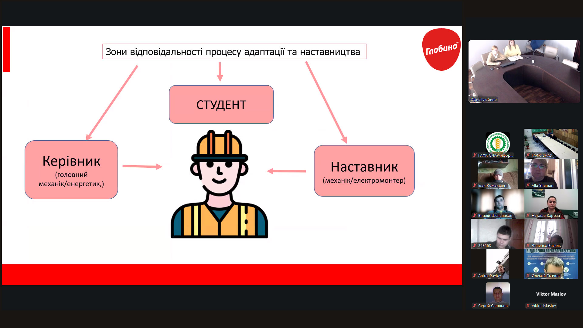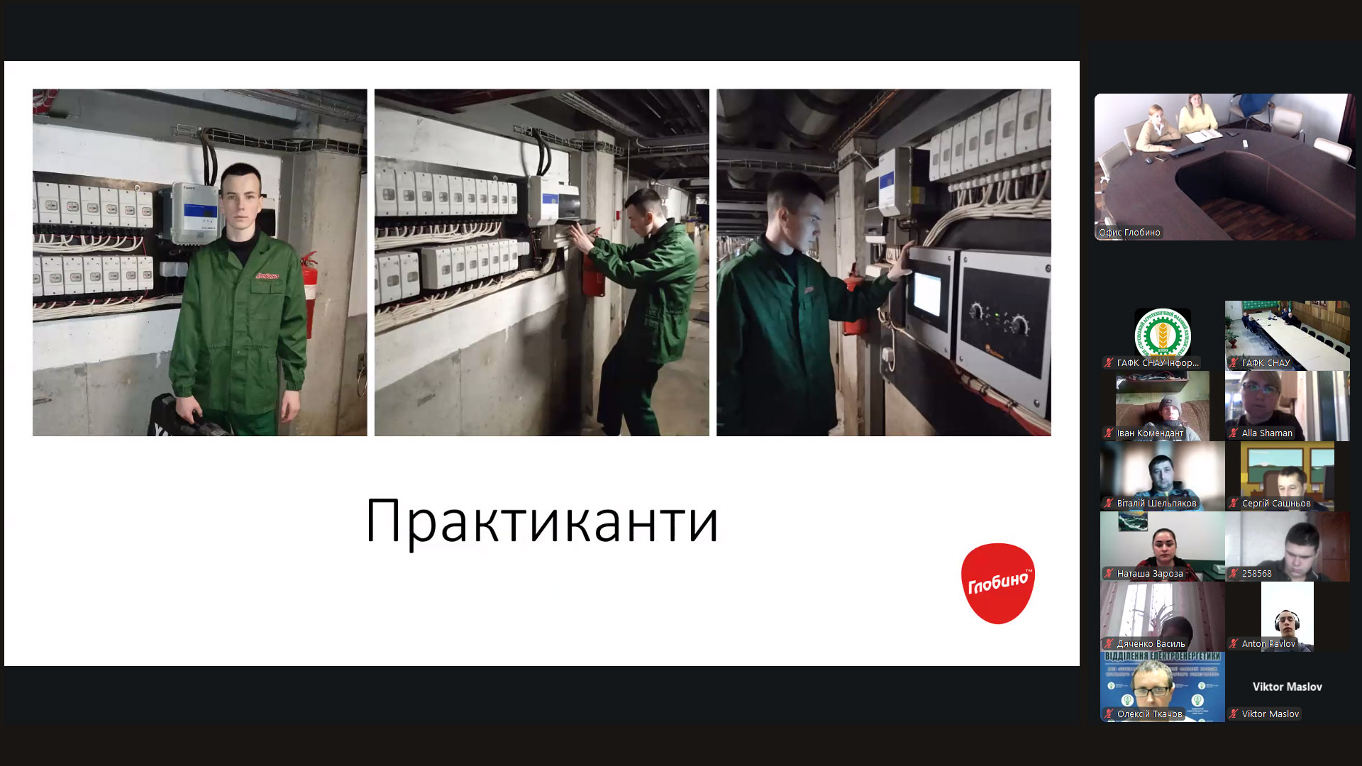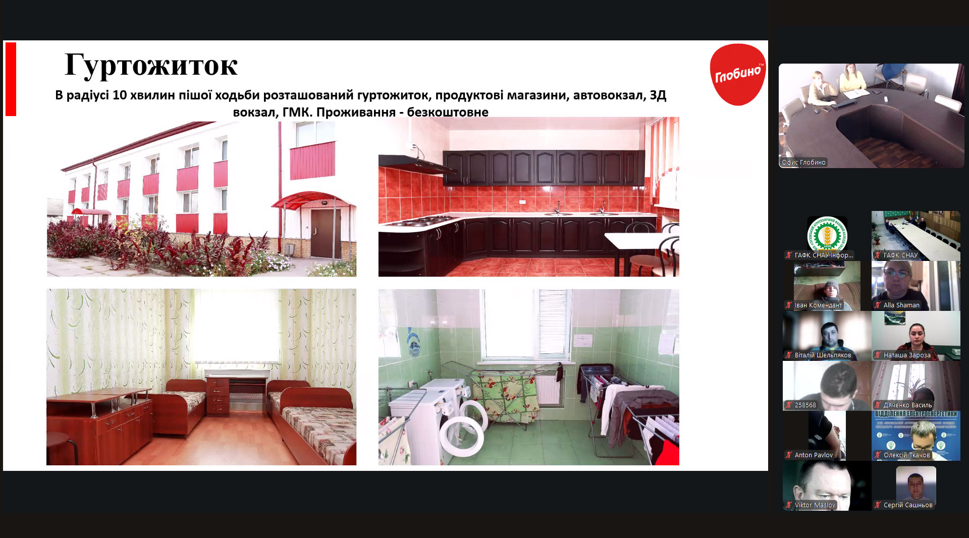 Студенти випускних груп на чолі з адміністрацією Глухівського агротехнічного фахового коледжу СНАУ взяли участь в онлайн-зустрічі “Практика – можливість доторкнутися до своєї професії” з представниками компанії “Глобино”.