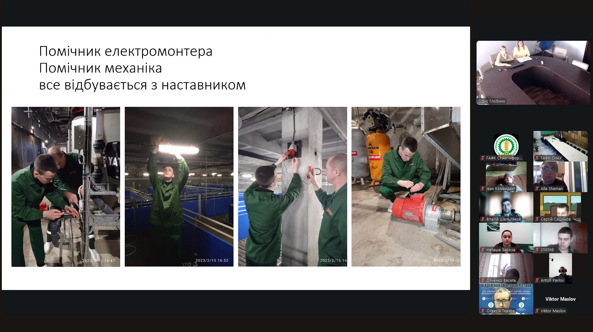 Студенти ставили запитання щодо логістики, заробітної плати, бронювання, особистого часу в період проходження практики, місця проживання, карантинних умов, стану укриттів на території підприємств тощо, на які гості та заступник директора з навчально-виробничої роботи ГАФК СНАУ Олександр Дещенко дали обґрунтовані відповіді.