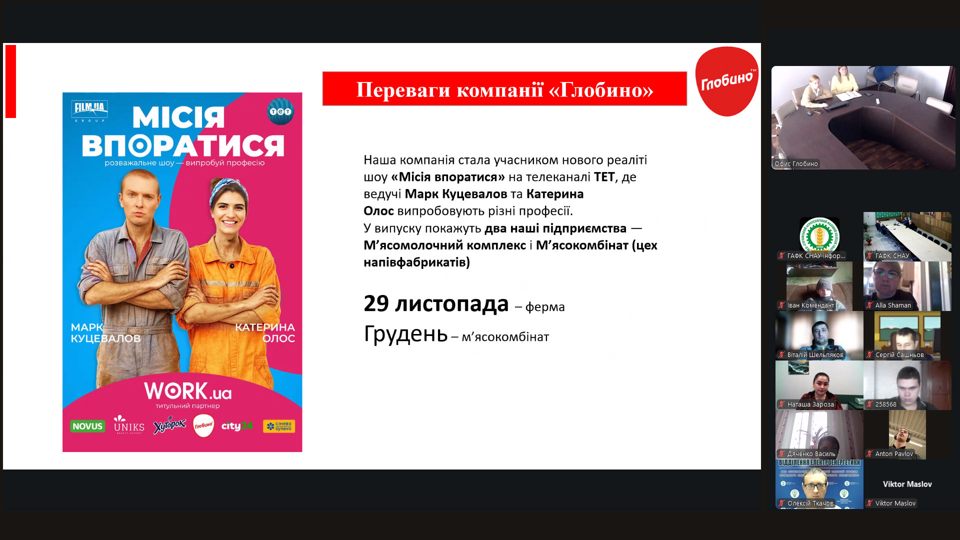 До того ж молоді фахівці дізналися, що «Глобино» активно популяризує професії аграрного сектору: компанія стала учасником телевізійного реаліті-шоу «Місія впоратися» на телеканалі “ТЕТ”, у якому демонструють роботу на виробництві зсередини.