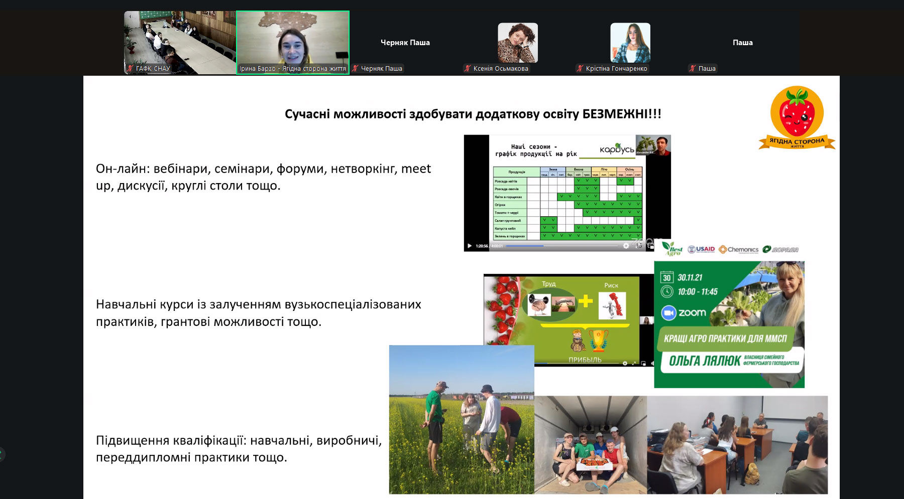 Також пані Ірина розповіла про реалізацію пілотного проєкту «Школа агроскаутингу» для студентів і продемонструвала, як на підприємстві впроваджують агротуризм для найменших – екскурсії, під час яких діти можуть на власні очі побачити, як ростуть ягоди й овочі, спробувати зібрати врожай.