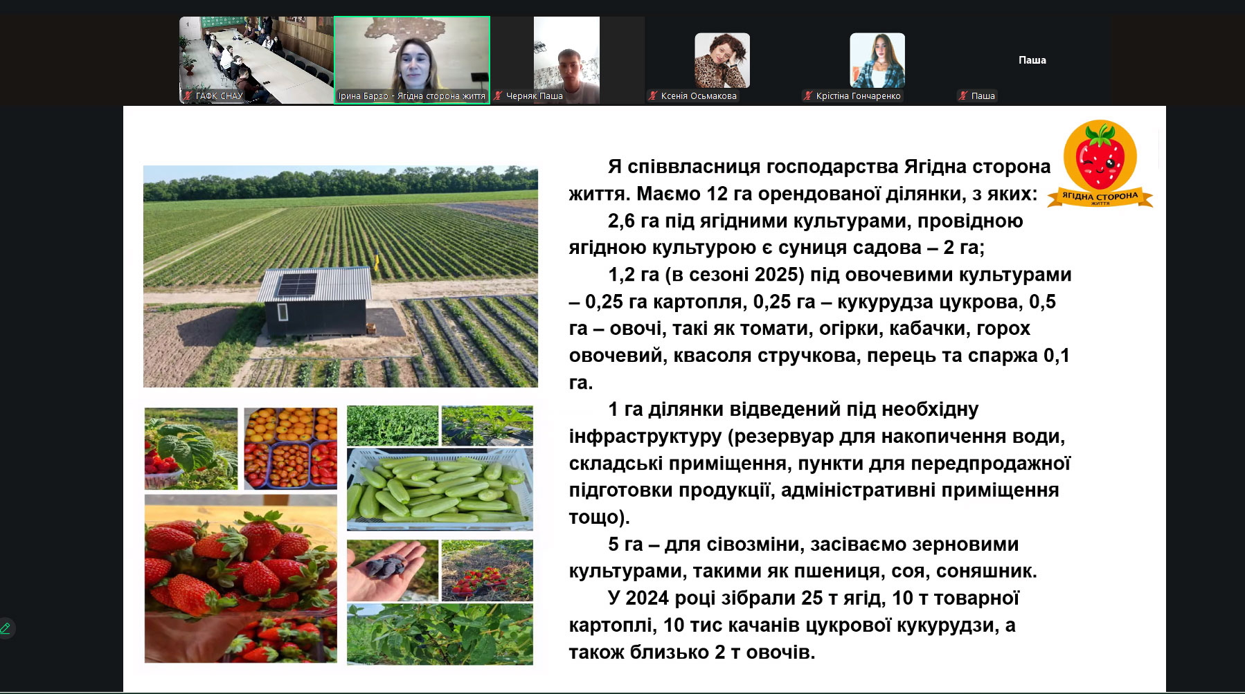 Підприємиця Ірина Барзо провела гостьову лекцію для студентів 21АГ та 31АГ груп і викладачів відділення агроінженерії.