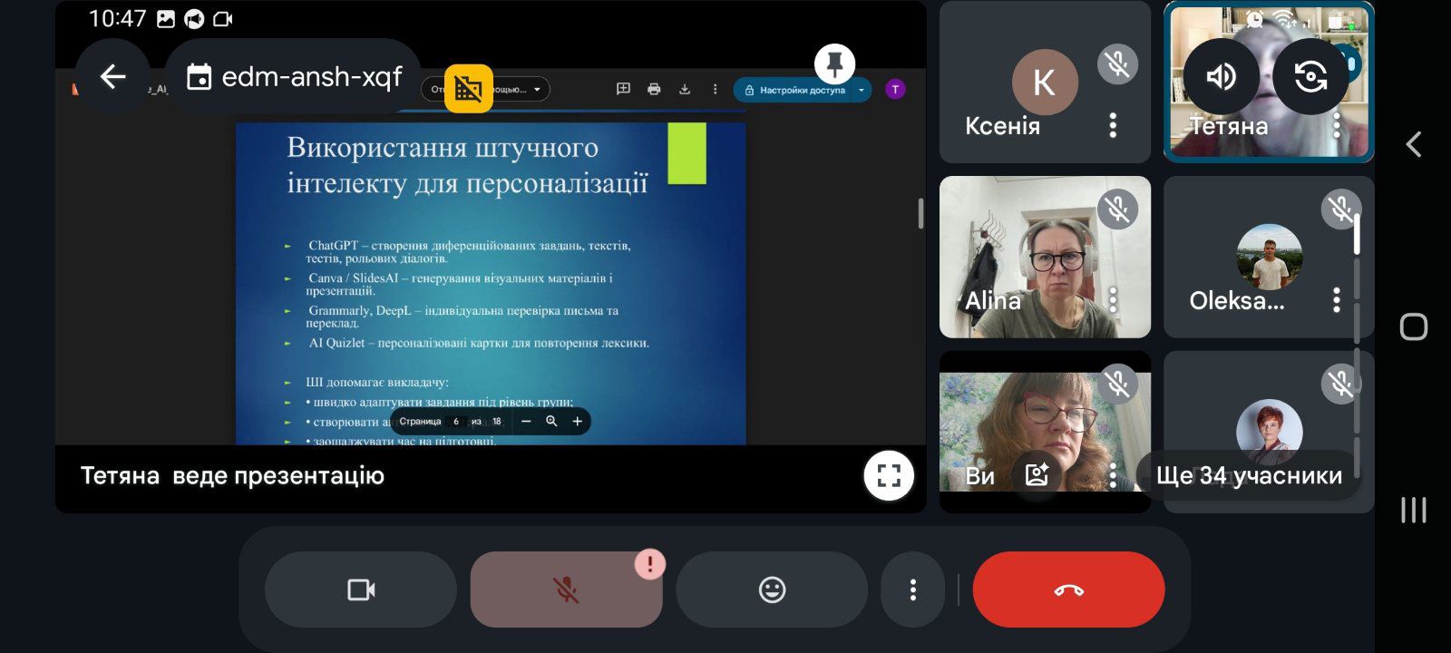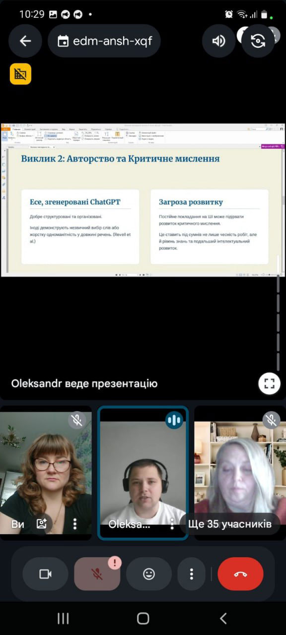 Під час зустрічі учасники обговорили роль медіації на заняттях з англійської мови та її значення для покращення розуміння й ефективної комунікації. Окремо спікери розглянули виклики навчання письма в умовах стрімкого розвитку штучного інтелекту та підкреслили важливість дотримання етичних і методологічних принципів.