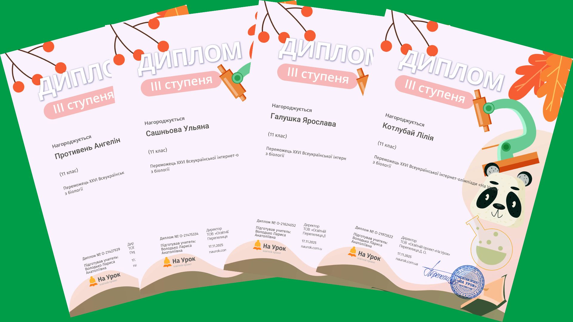 Студенти Глухівського агротехнічного фахового коледжу СНАУ гідно продемонстрували свої знання у XXVI Всеукраїнській інтернет-олімпіаді «На Урок» (Осінь 2025) з біології.