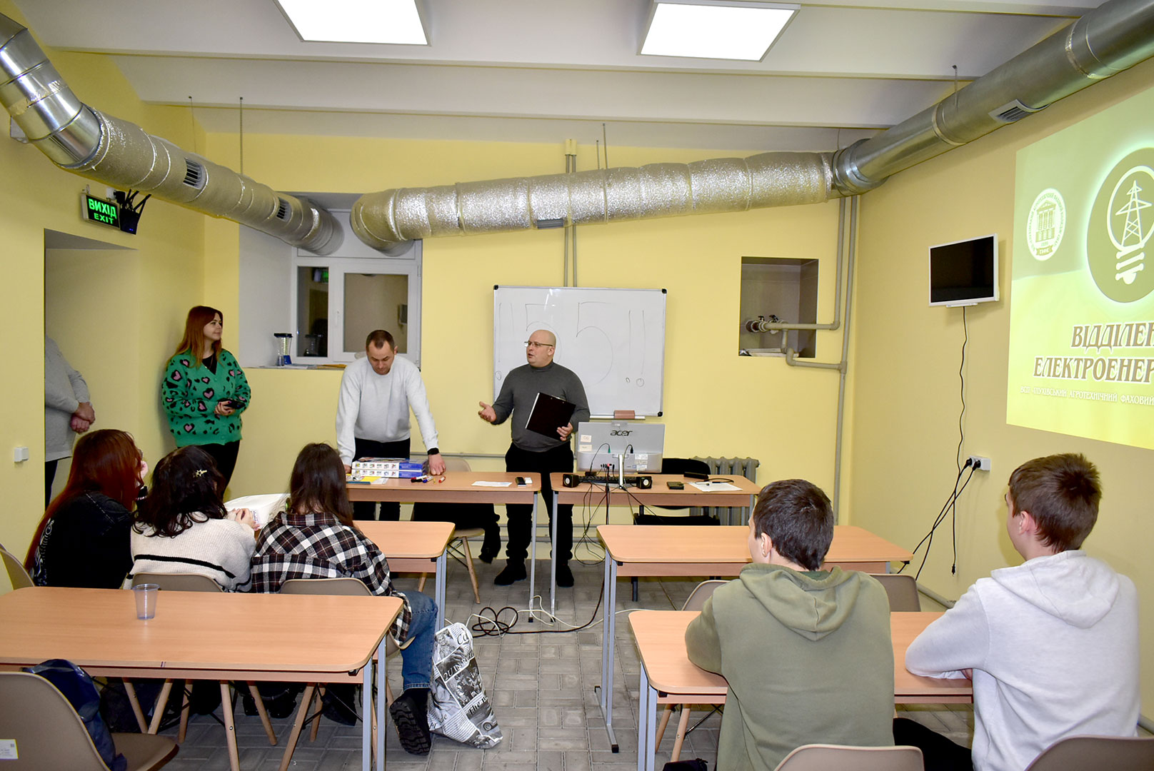 Завідувач відділення Віталій Ладижев розповів присутнім про багаторічні традиції електроенергетичного напряму підготовки фахівців, його розвиток і перспективи. Під час відеопрезентації школярам продемонстрували лабораторії відділення, приділивши увагу тому, що воно стрімко розвивається: активно модернізується матеріально-технічна база, оновлюється лабораторне обладнання та створюється безпечний і комфортний освітній простір для здобувачів освіти.